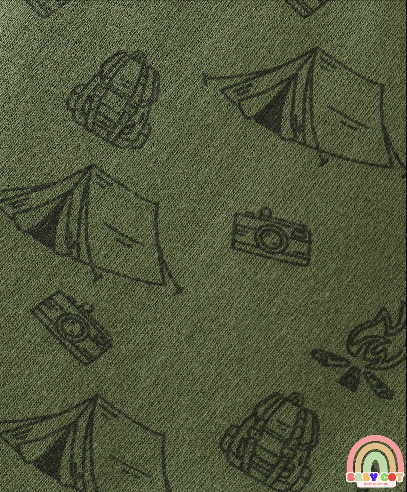 Cotton Knit Striped and Bear Printed Shorts Pack of 3 - Green White and Brown