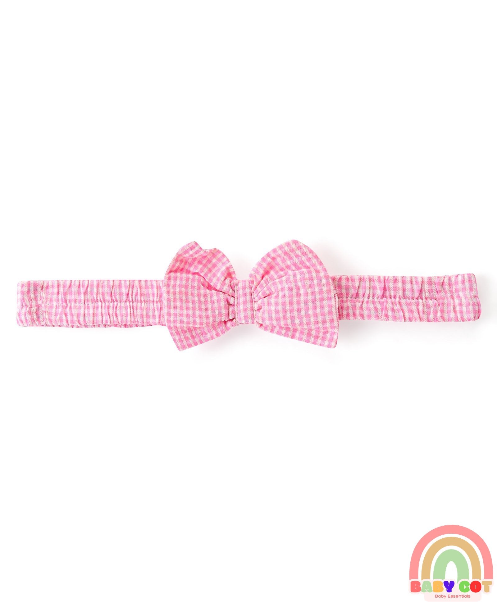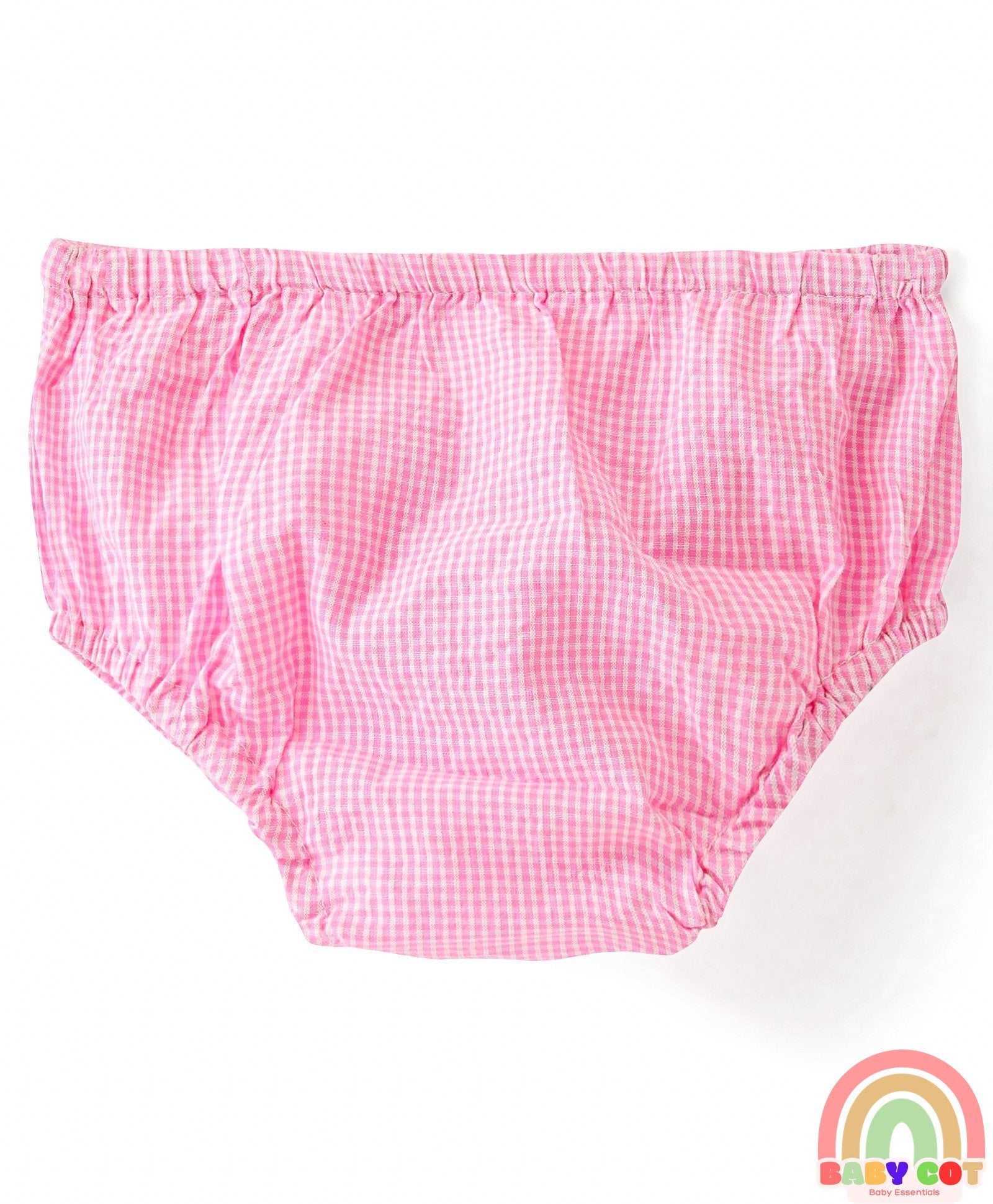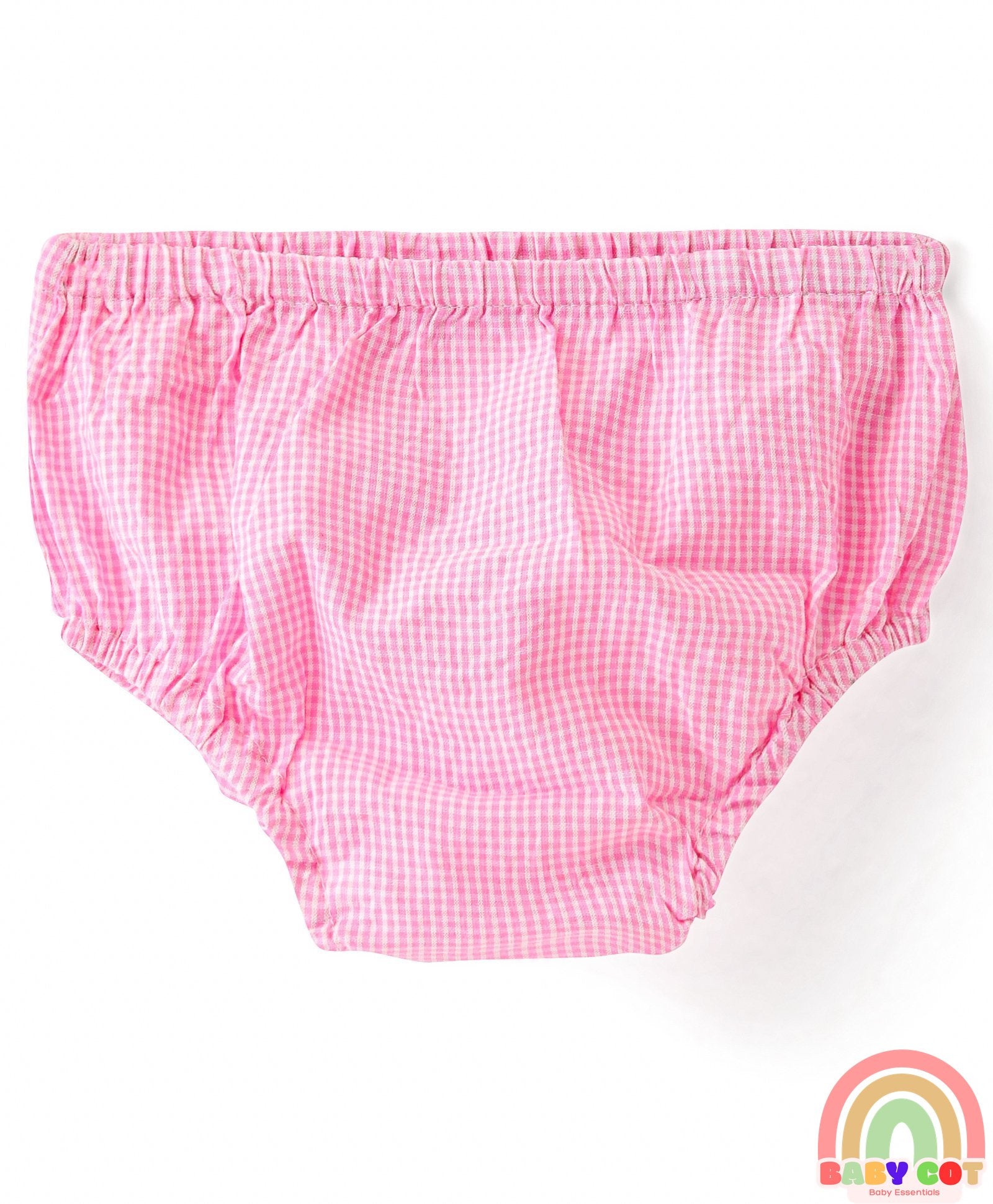 Cotton Woven Frill Sleeves Floral Embroidered & Lace Detailing Frock With Bloomer & Headband - Pink