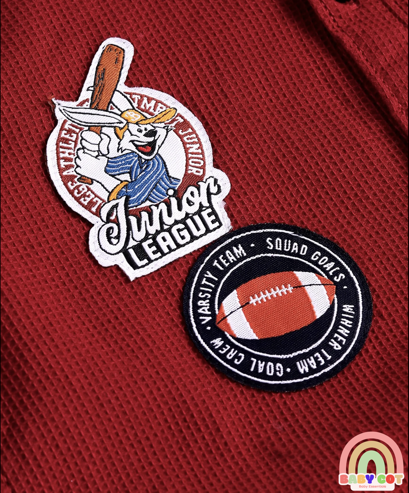 Cotton Woven Full Sleeves Shirt with Text Patch Detailing - Red