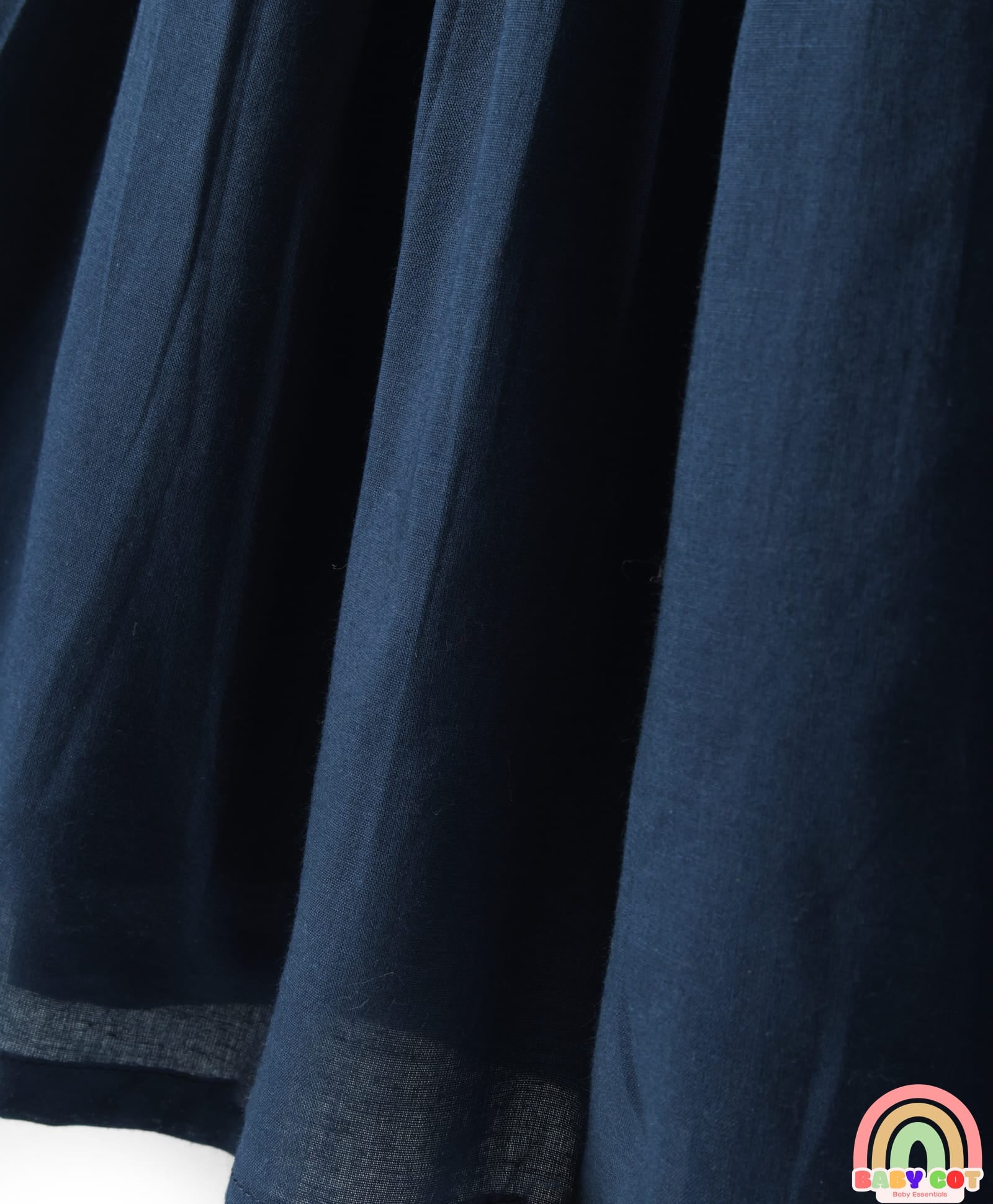Cotton Woven Sleeveless Solid Frock With Belt - Navy Blue