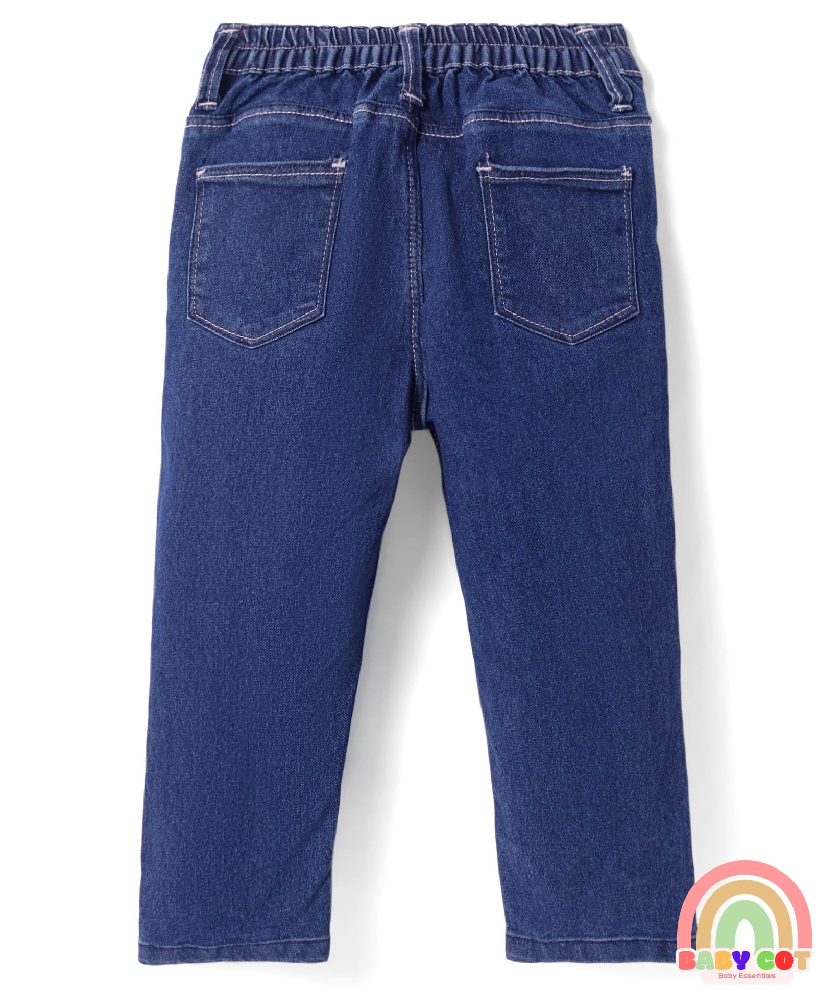 Denim Full Length Washed Jeans With Stretch - Dark Blue