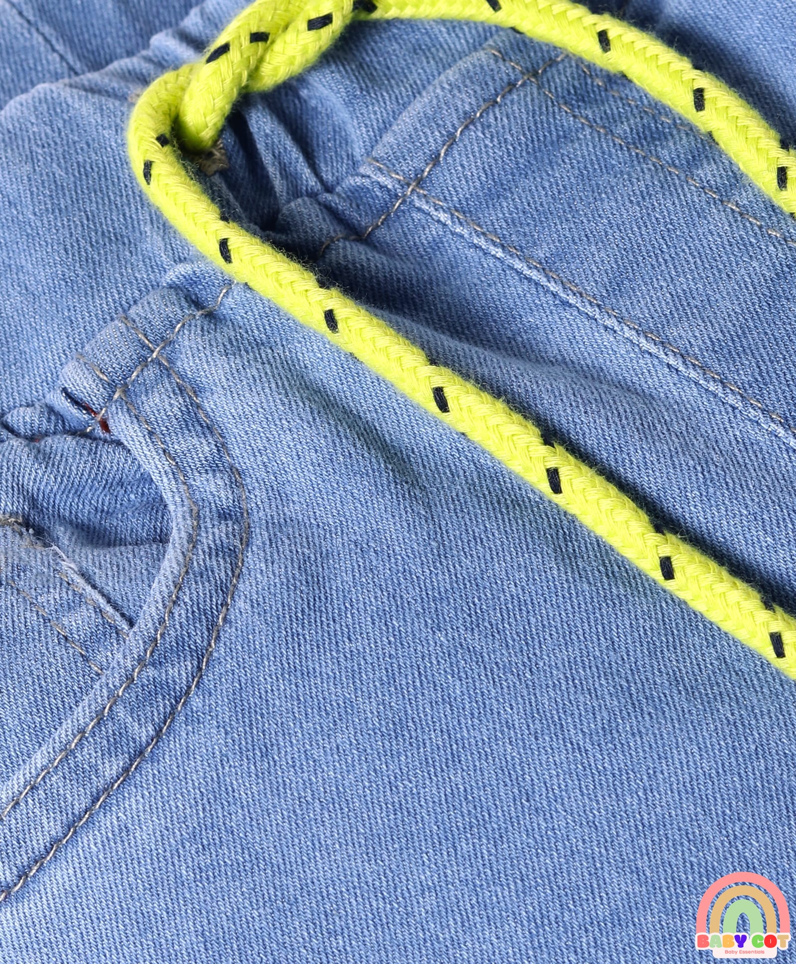 Full Length Washed Denim Jeans With Stretch - Light Blue