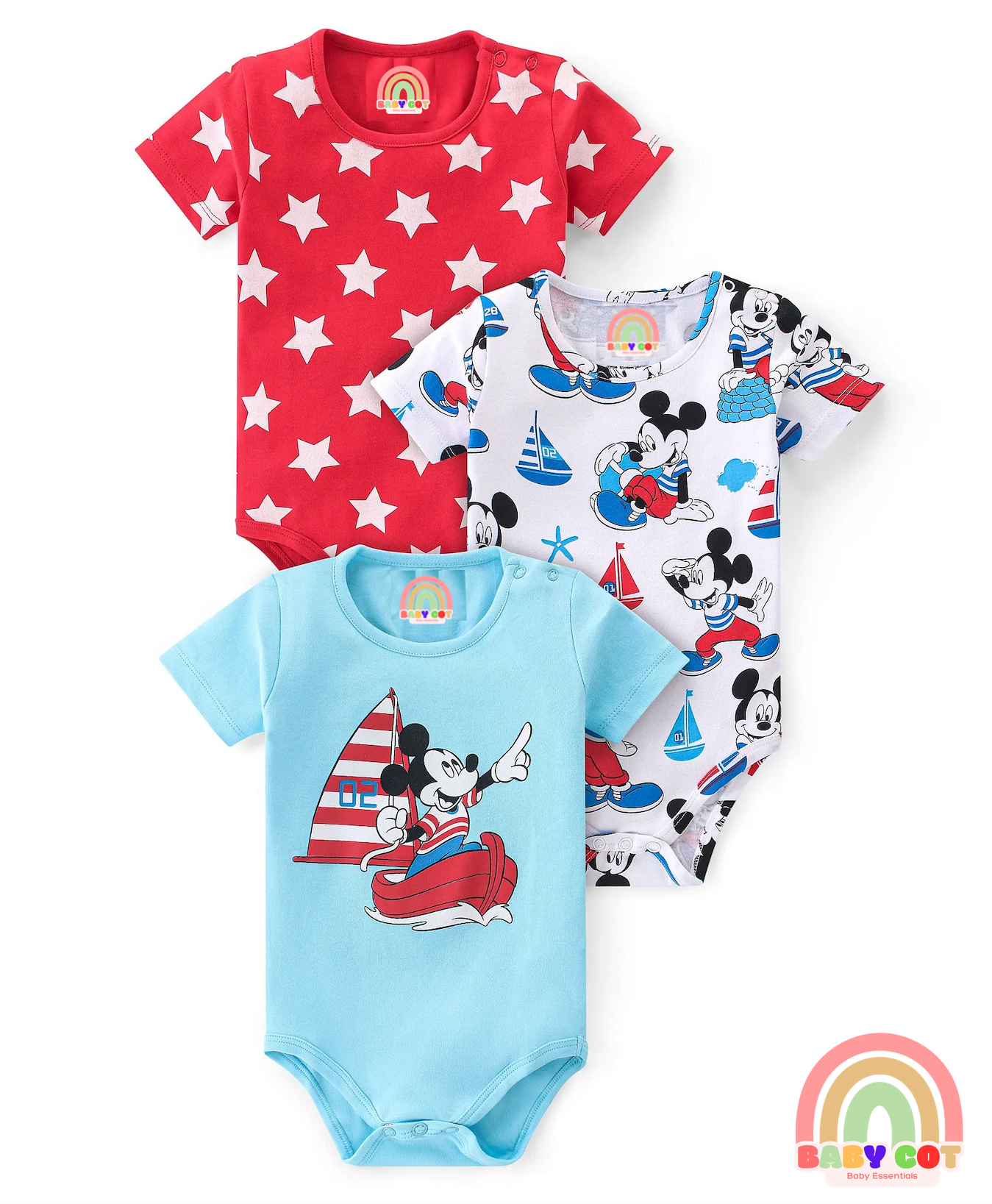 Interlock Cotton Knit Half Sleeves Printed Onesies Pack of 3 - Multicolor