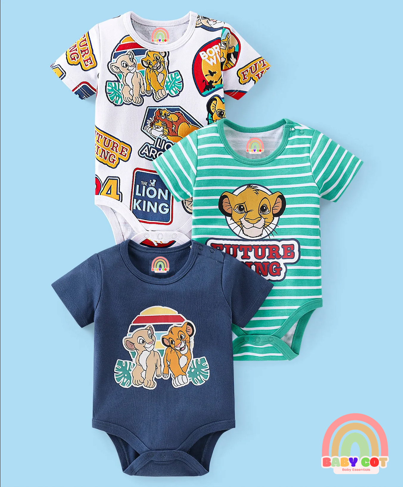Interlock Half Sleeves Onesies With Lion King Graphics Pack of 3 - Multicolour