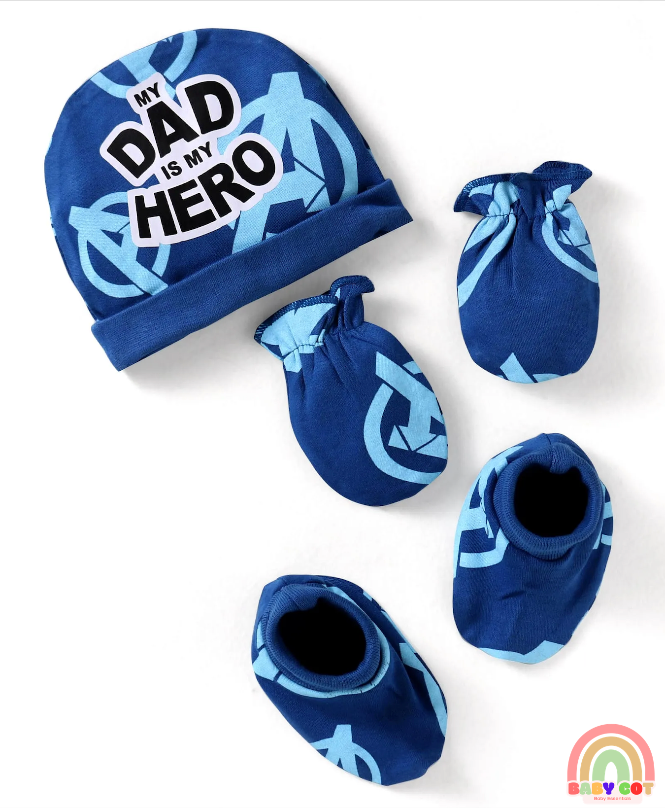 Interlock Knit Cap Mittens & Booties Set - Blue