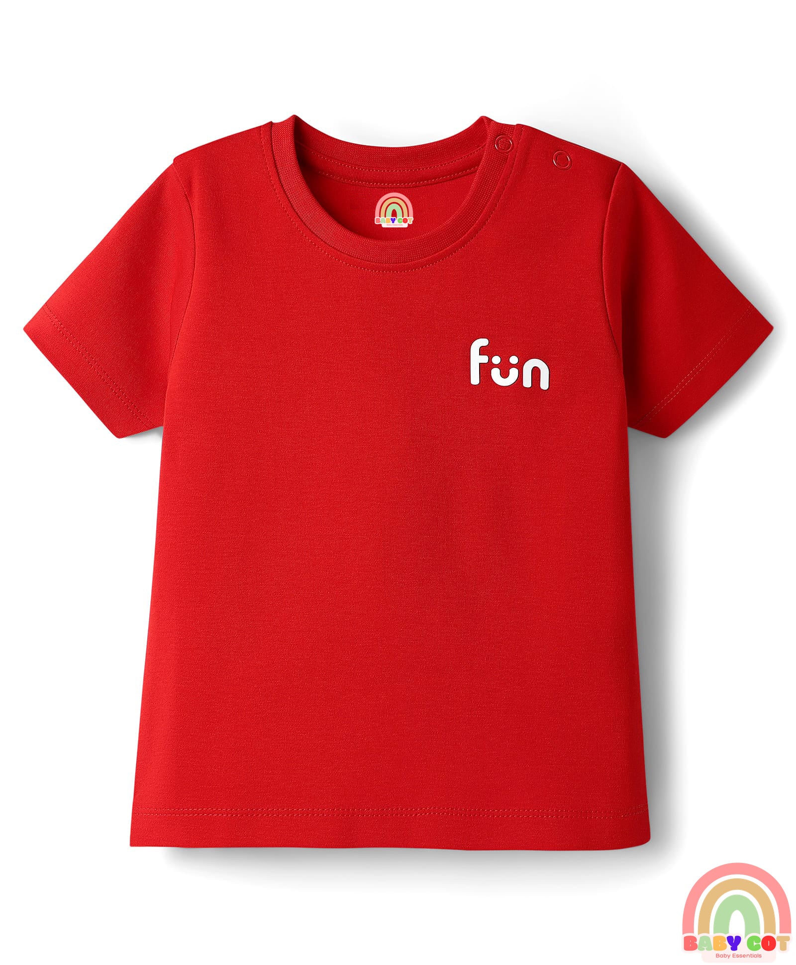 Interlock Knit Half Sleeves T-Shirts with Text Print Pack of 2 - Red & Light Green