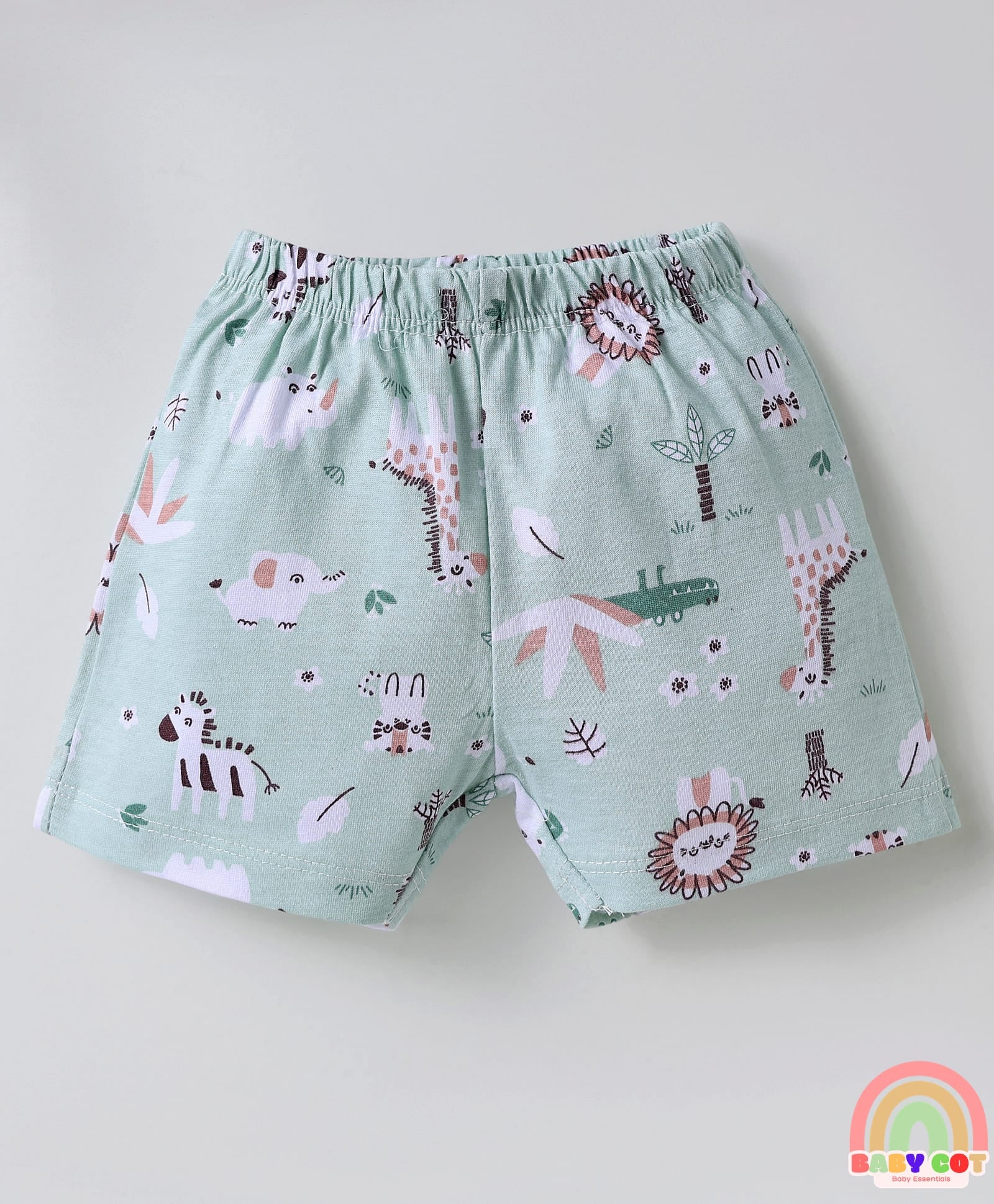 Single Jersey Knit Above Knee Length Shorts With Animal & Heart Print Pack Of 5 - Multicolour