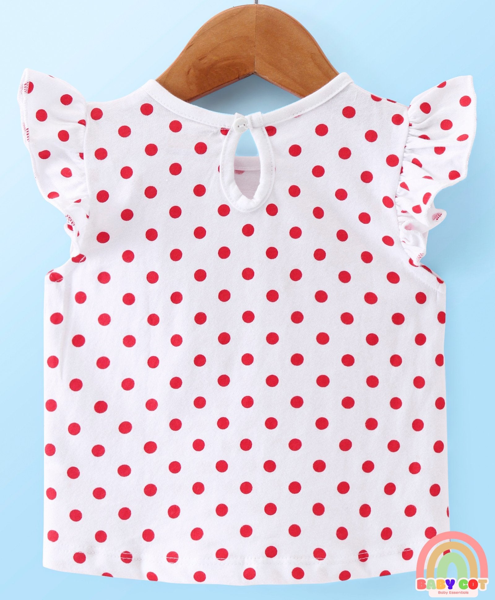 Single Jersey Knit Frill Sleeves T-Shirt With Layered Frock Floral Print - White & Red