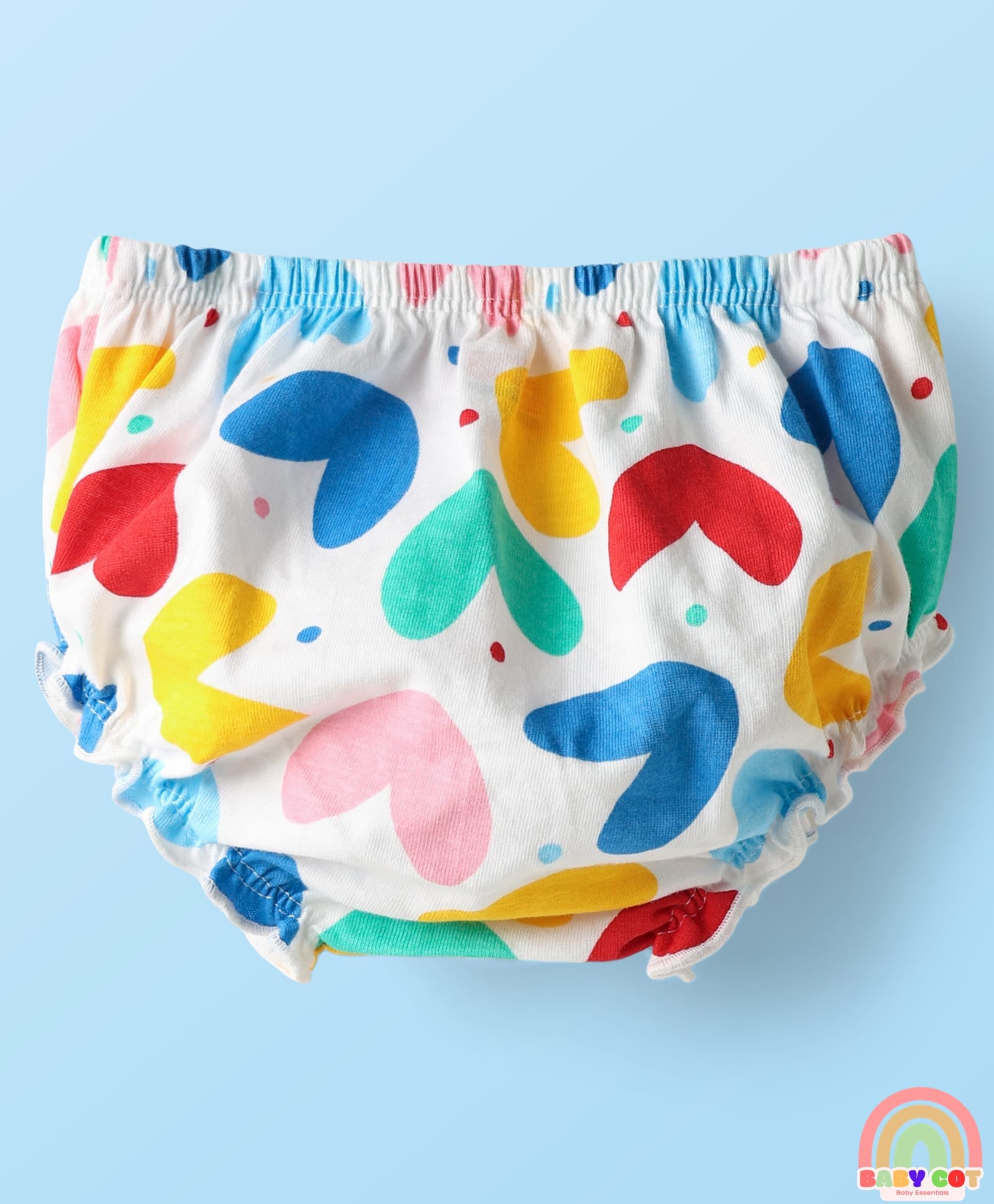 Single Jersey Knit Half Sleeves Heart Printed Frock With Bloomers - Red