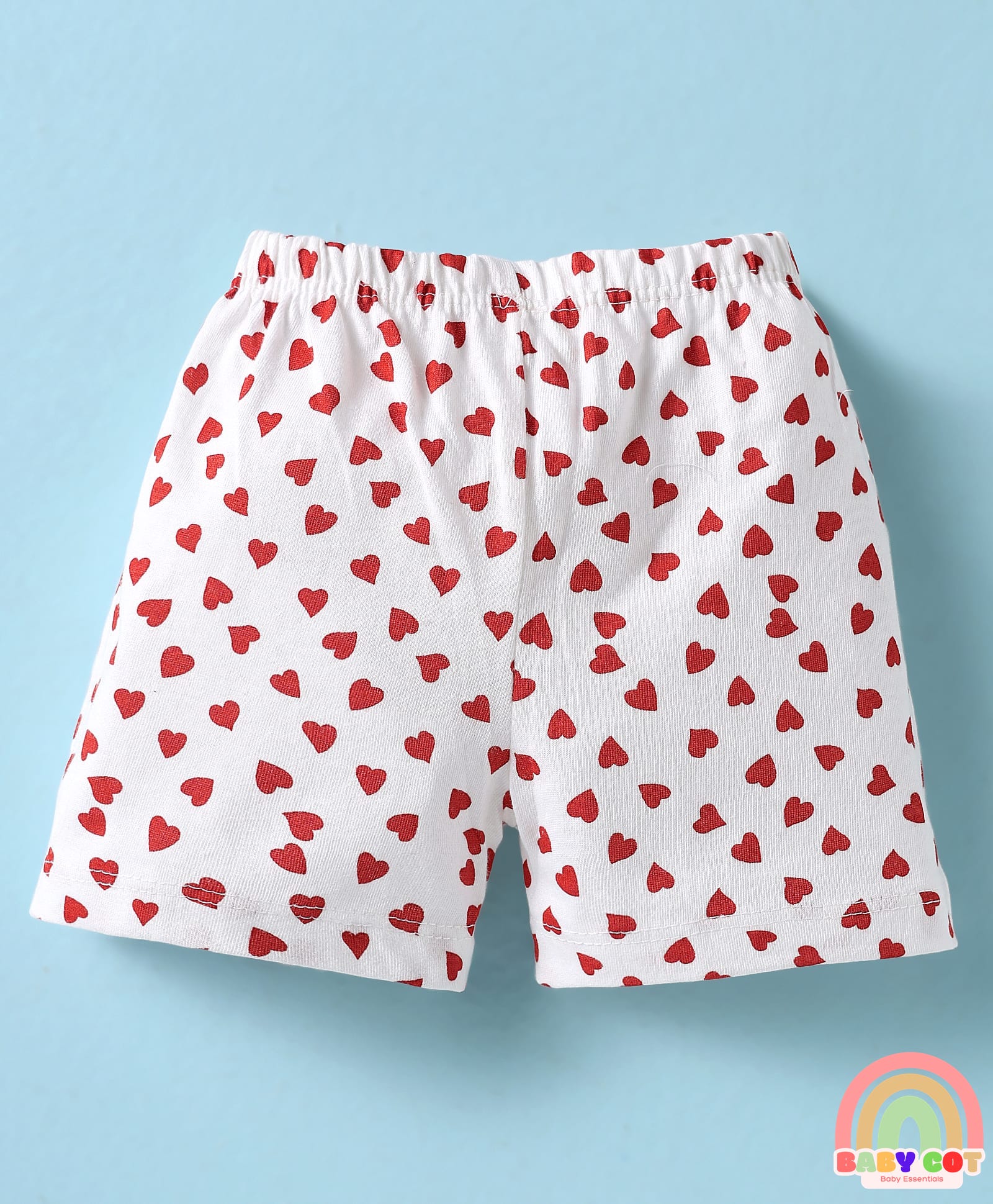 Single Jersey Knit Knee Length Shorts With Hearts & Floral Print Pack Of 3 - Red Pink & White