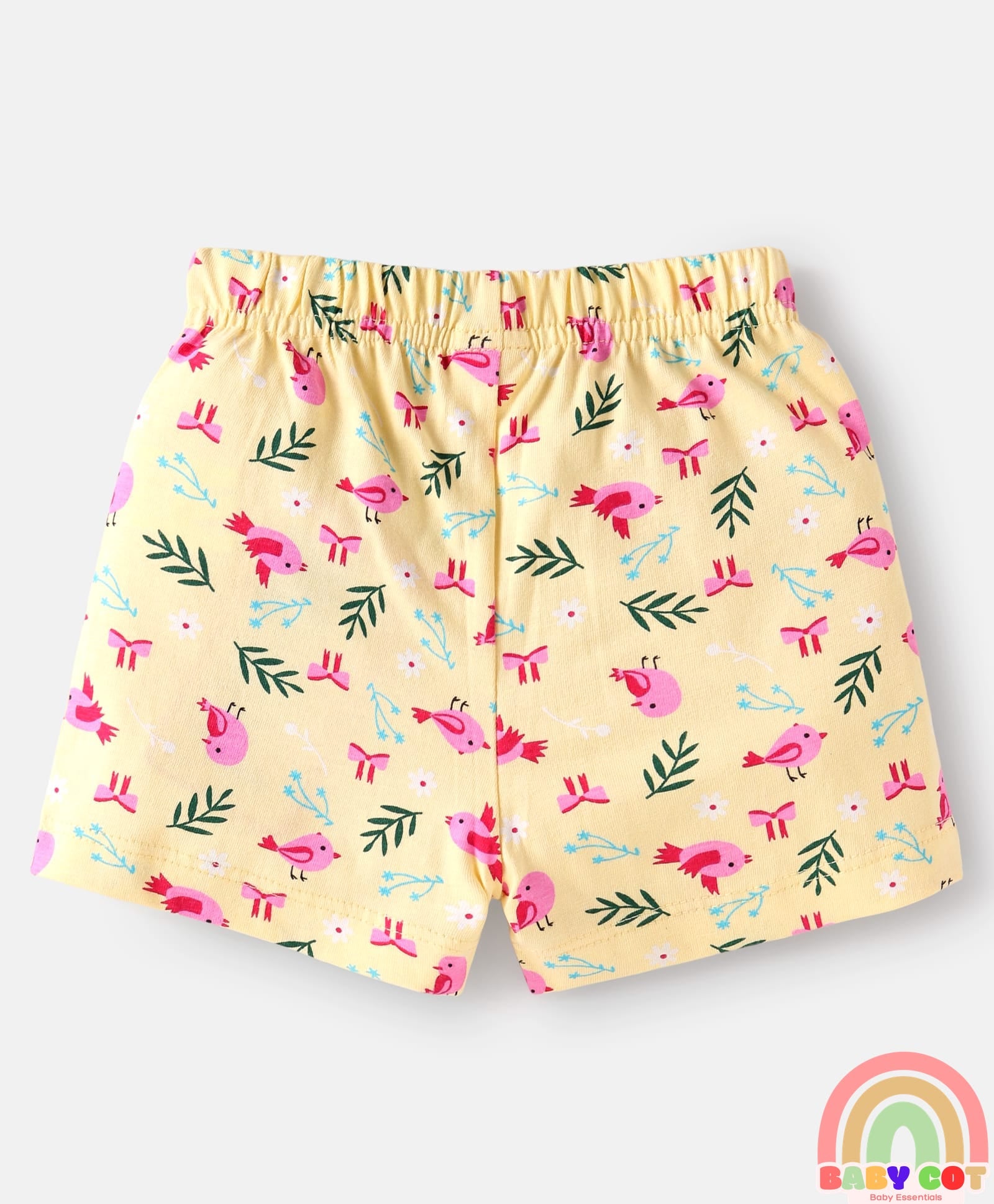Single Jersey Knit Mid Thigh Shorts with Polka Dots & Bird Print with Bow Applique Pack of 3 - Pink Beige & Dark Pink