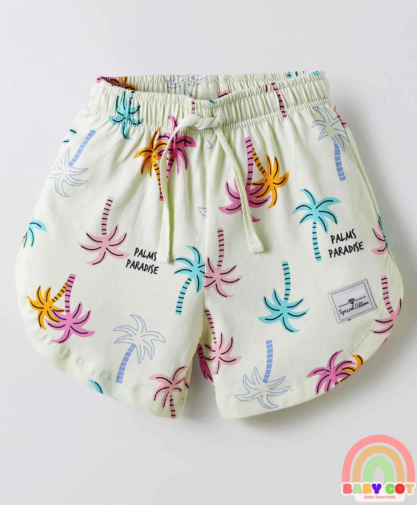 Sinker Knit Above Knee Length Shorts With Bow & Beach Theme Print Pack Of 3 - Purple Pink & Light Yellow
