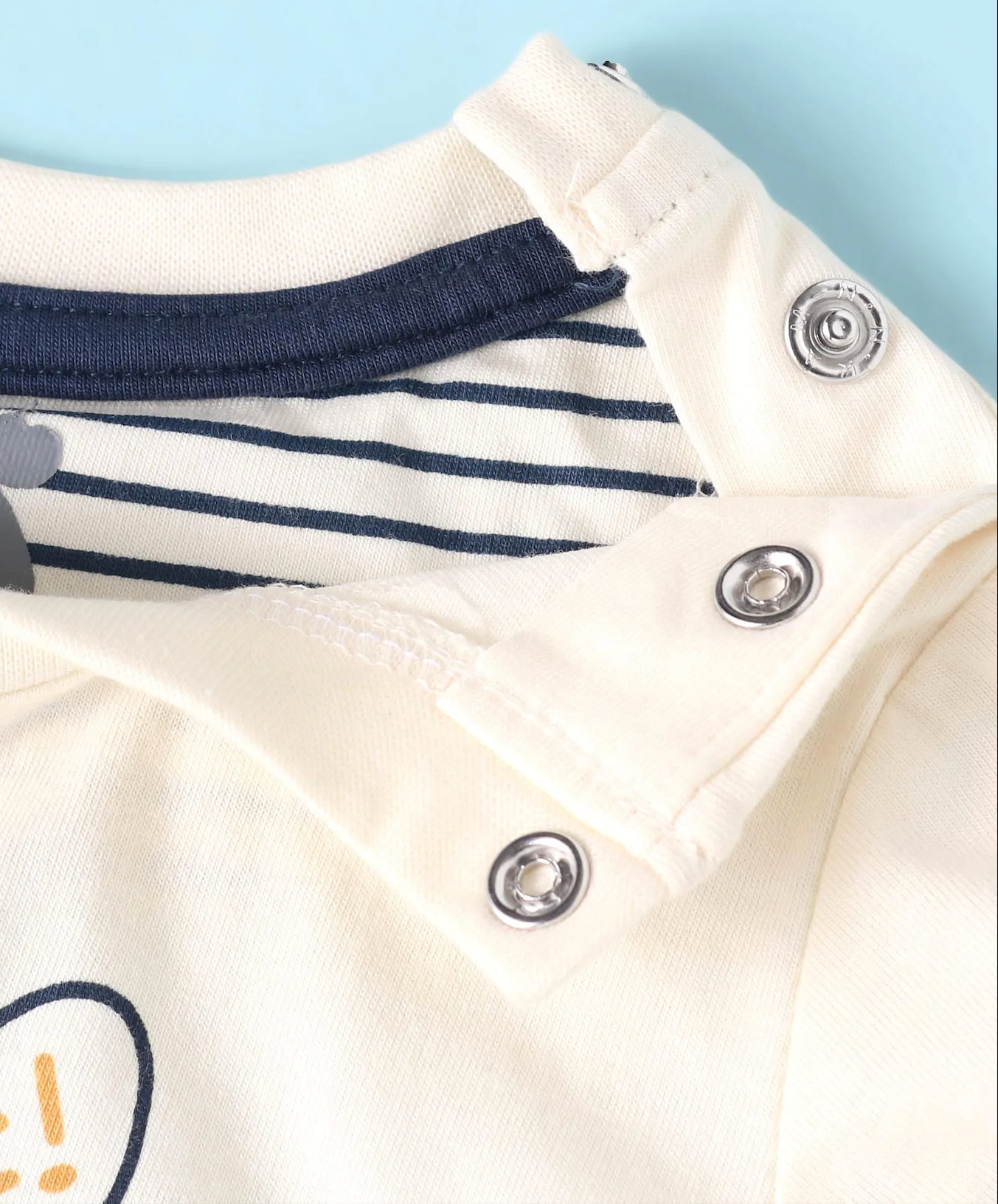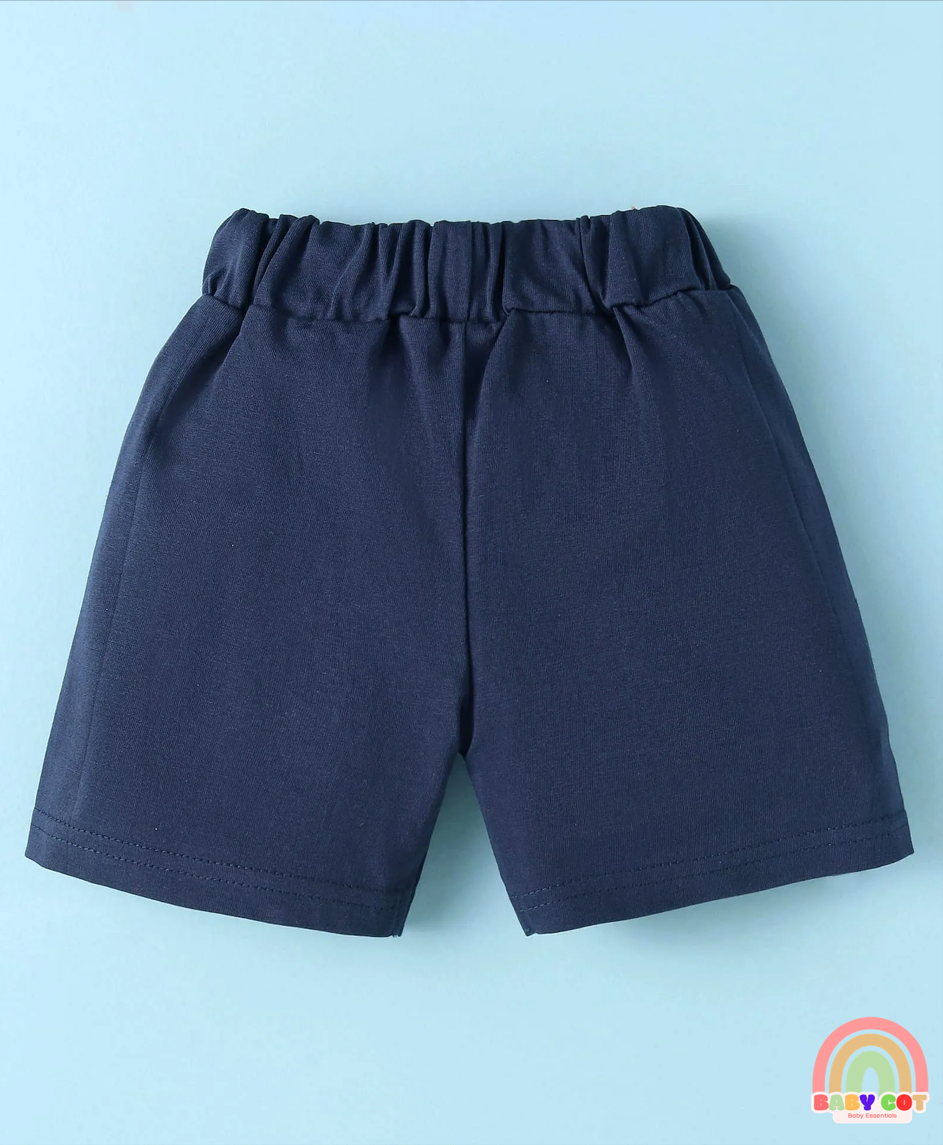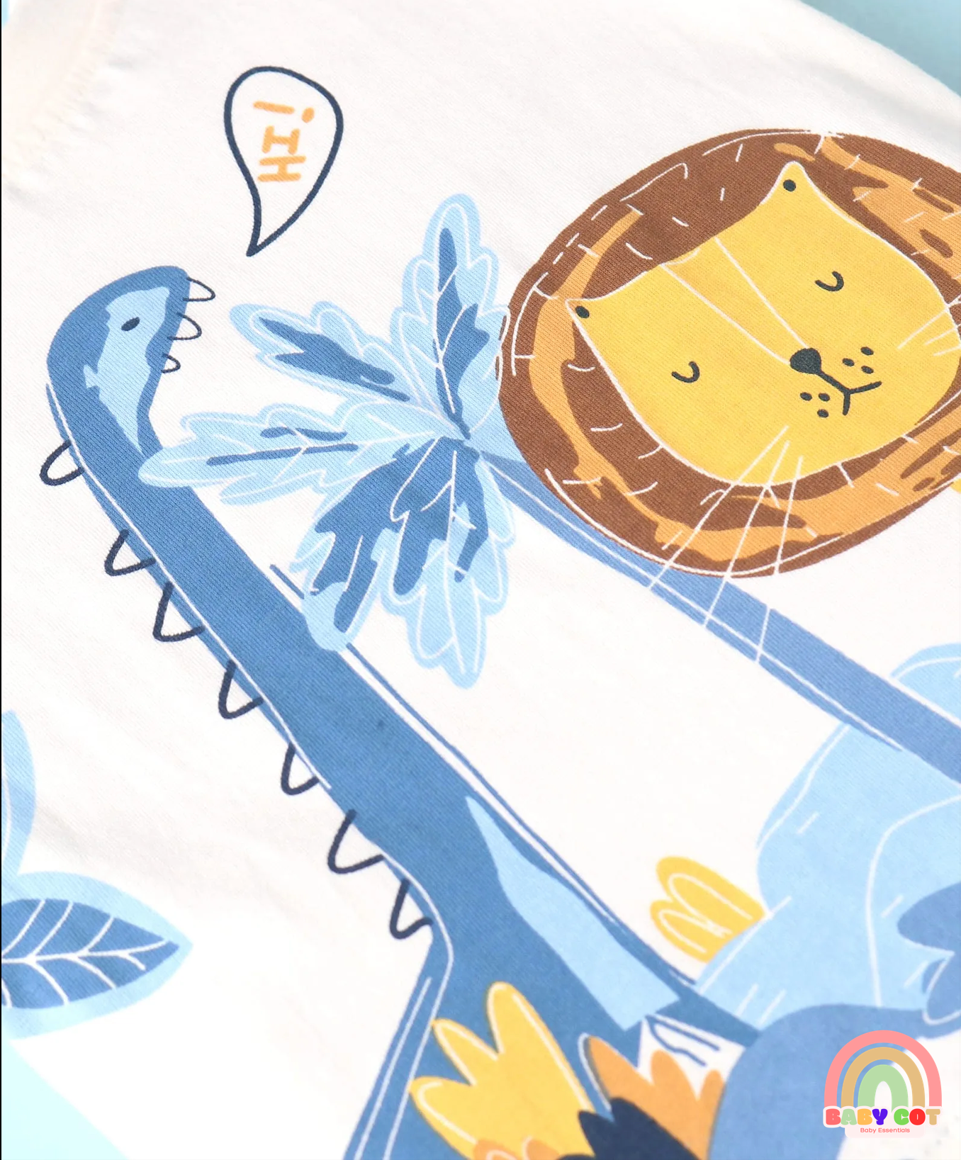 Sinker Knit Half Sleeves T-Shirt & Shorts Set with Jungle Theme Print - Navy Blue