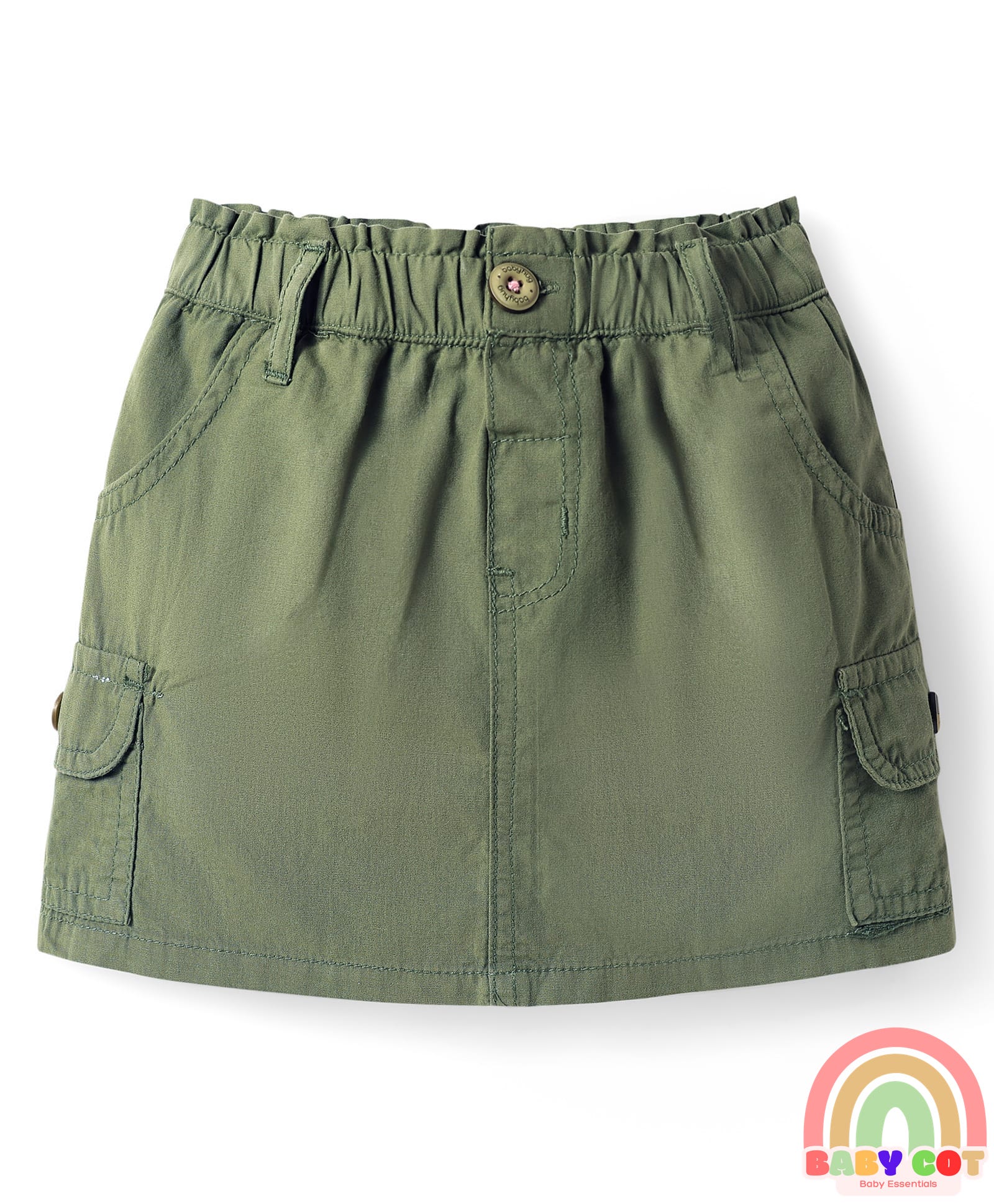 Twill Woven Mid Thigh Solid Color Skorts with Stretch - Olive Green