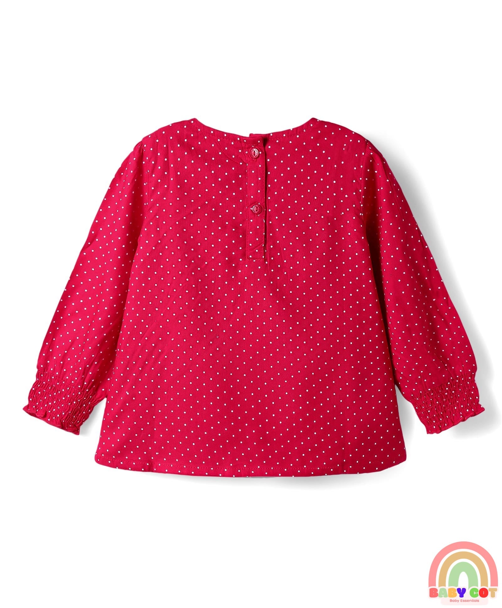 Woven Full Sleeves Rayon Top With Frill Detailing & Floral Embroidery - Dark Pink